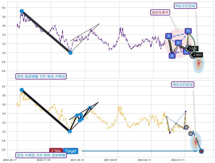 ➢ 谐波螃蟹属【短级别信号事件】升楔型属【长级别信号事件】长短周期组合信号事件, 短长事件长度比27.88%