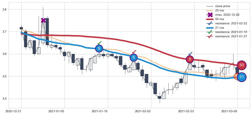 📝 多条均线形成死叉后走势最低价格达到: 3.350