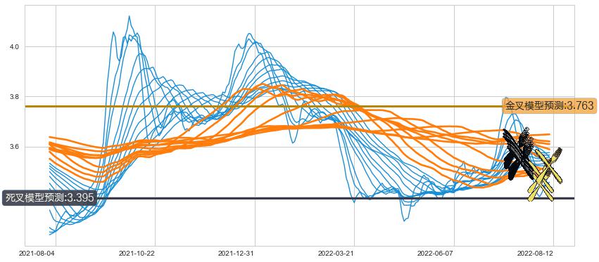 ➣ 40小时均线于(2022-07-22: 3.567)形成【死叉】基于【死叉历史模型】预测死叉后最低波谷价格: 3.429, 死叉后最低价格3.350,已经下跌超出预测最低波谷价格, 预期反弹