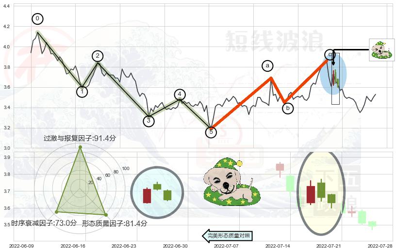 ➢ 🕰 价格走势在2022-07-14至2022-07-18期间形成早晨之星(黎明之星),残存影响值:5.77