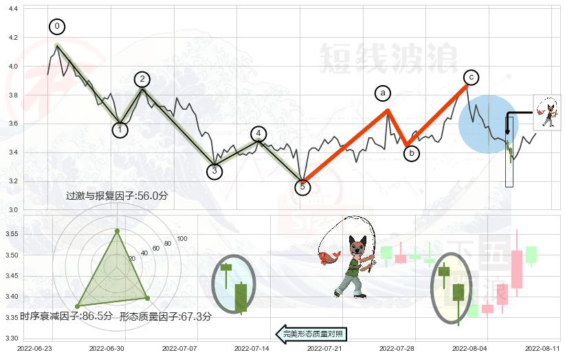 从2022-08-03至2022-08-12,共包含8个交易日,阶段股价上涨5.29%,阶段股价变动位移路程比: 1 : 1.5