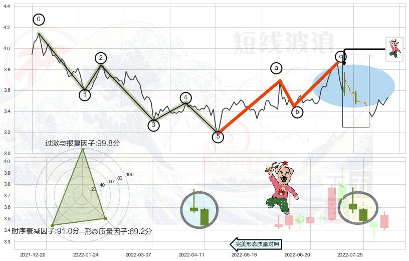 ♘ 支撑价格位3.416,可信任强度74.22%,距离最后交易2022-08-12形成的收盘价格3.530相差 -3.24%