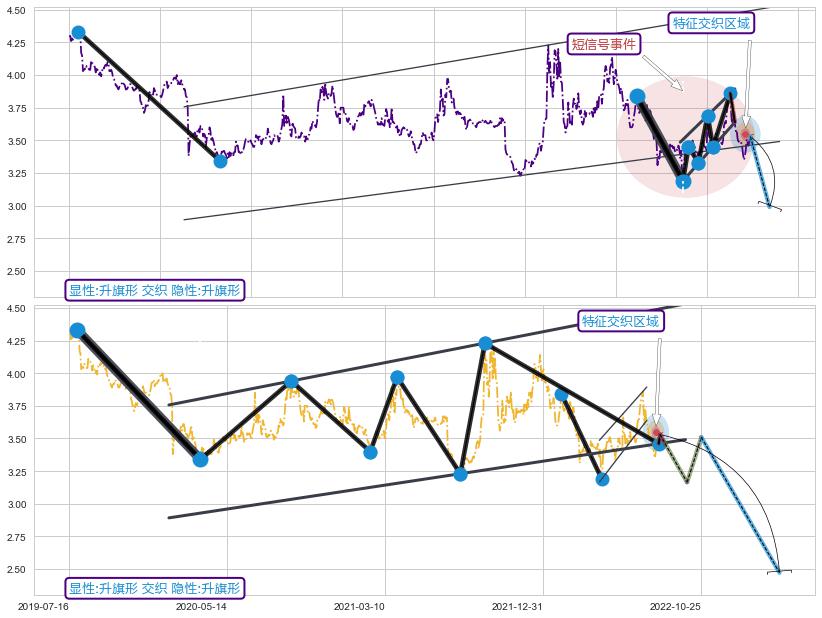 ➢ 升旗形属【短级别信号事件】升旗形属【长级别信号事件】长短周期组合信号事件, 短长事件长度比14.75%