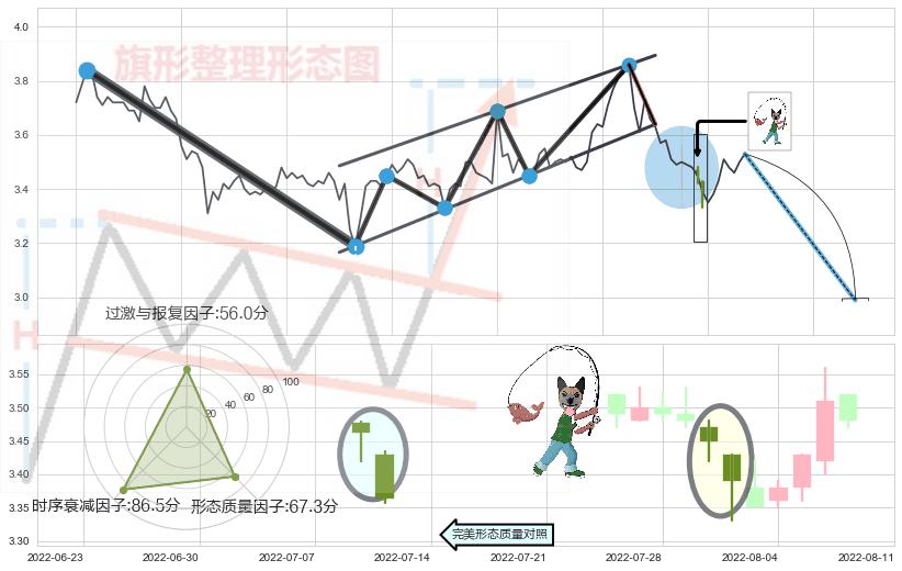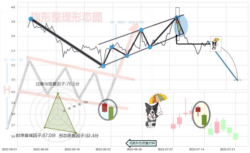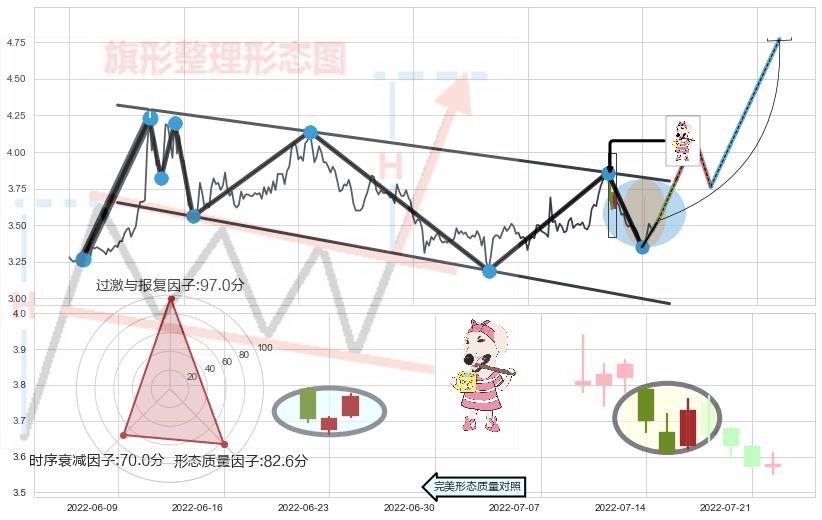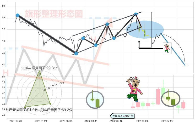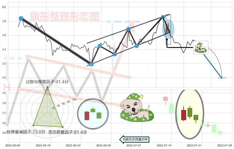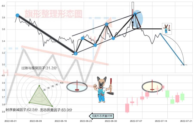 ➢ 【卖1】: 激进型 卖点→(2022-07-20: 3.639 )形成突破升⚑旗形【整理】形态