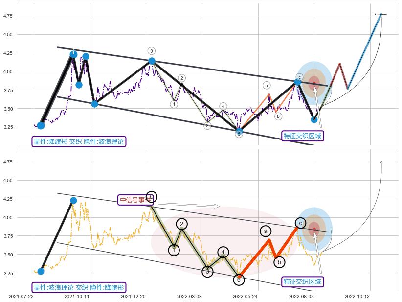 ➢ 波浪理论属【中级别信号事件】降旗形属【长级别信号事件】中长周期组合信号事件,中长事件长度比51.98%