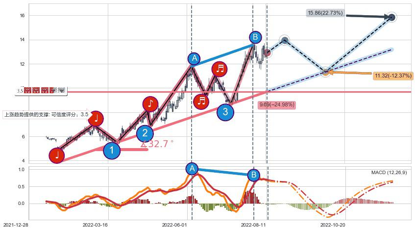 ♘ 支撑价格位11.60,可信任强度63.11%,距离最后交易2022-08-12形成的收盘价格12.92相差 -10.18%