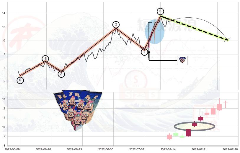 ➣ 波浪理论:猜想止涨 → 下跌 →【拐点】浪5已完成 → 大趋势均值回复