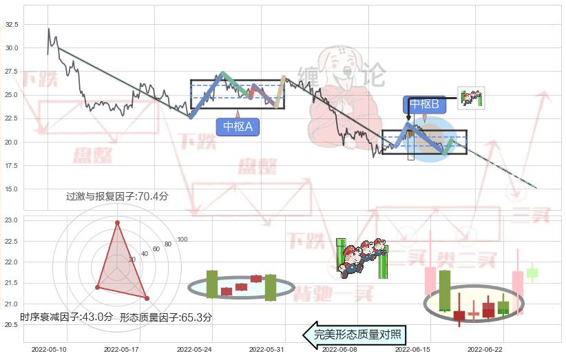 ➢ 下跌孕十字星 🔜 缠论中枢点破位中枢B支撑下拉 综合量化分数:46.46 【中性】