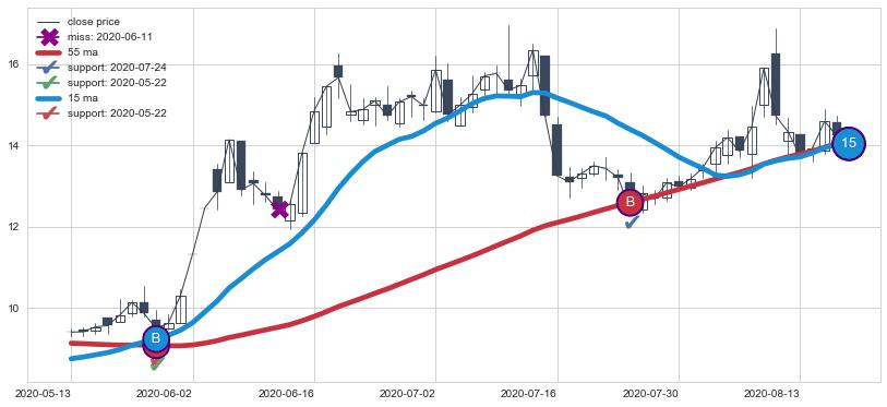 📝 多条均线形成死叉后走势最低价格达到: 8.13