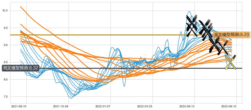 ➣ 40小时均线于(2022-07-01: 9.41)形成【死叉】基于【死叉历史模型】预测死叉后最低波谷价格: 8.78, 死叉后最低价格8.13,已经下跌超出预测最低波谷价格, 预期反弹