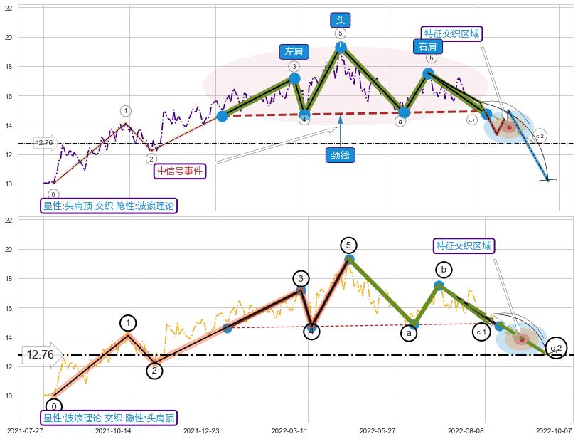 ➢ 【未确认突破,预测即将形成突破】头肩顶起点:2021-12-14, 预测突破点:2022-08-18,形态共166交易日