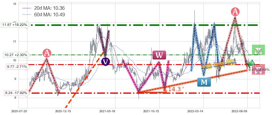 ♘ 支撑价格位9.77,可信任强度63.34%,距离最后交易2022-08-12形成的收盘价格10.04相差 -2.71%