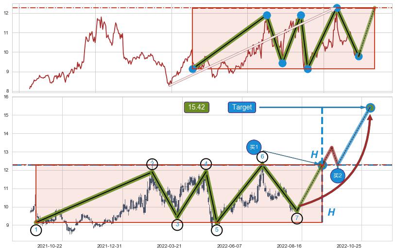 ➢ 2022-02-14到达第❸价格目标位置11.89