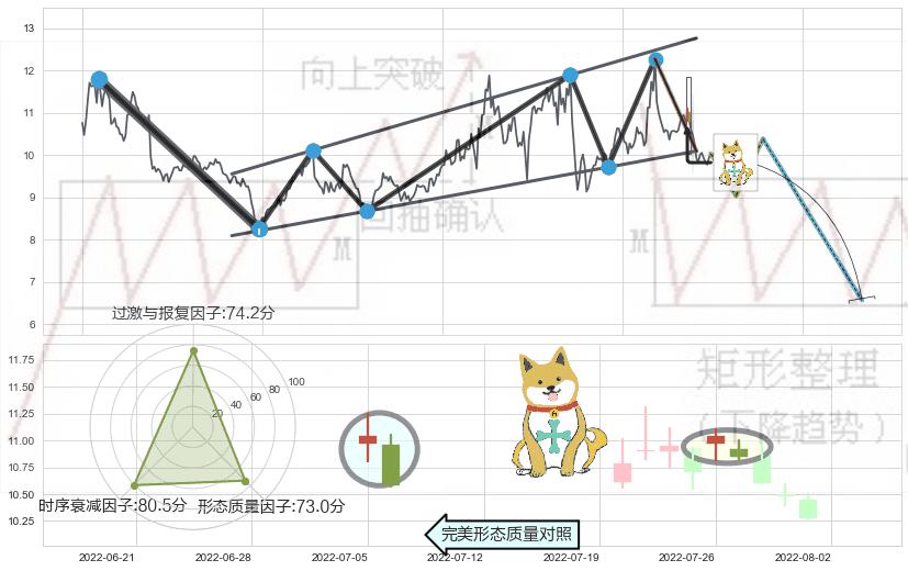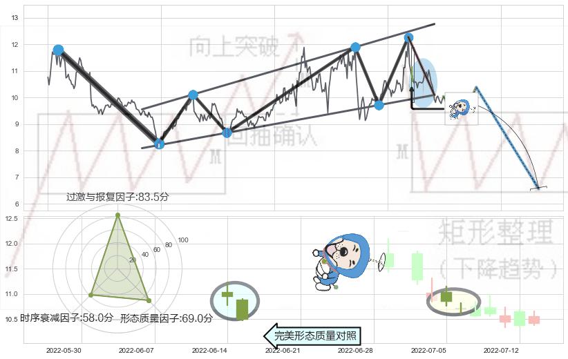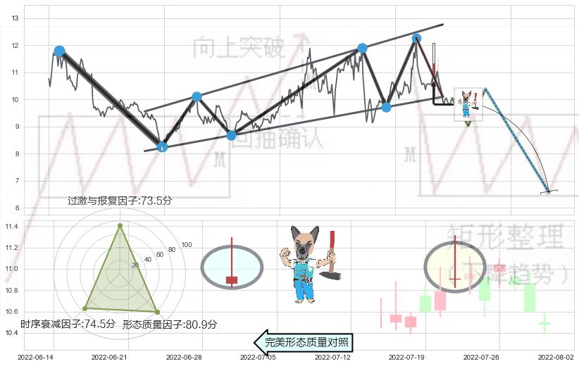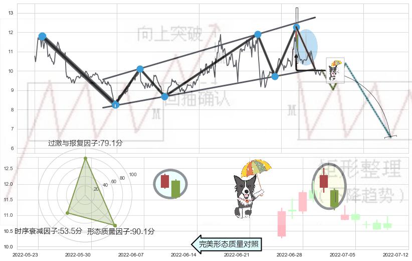 ➢ 下跌螺旋桨 🔜 升旗形支撑破位转换阻力下跌 综合量化分数:38.50 【偏空】