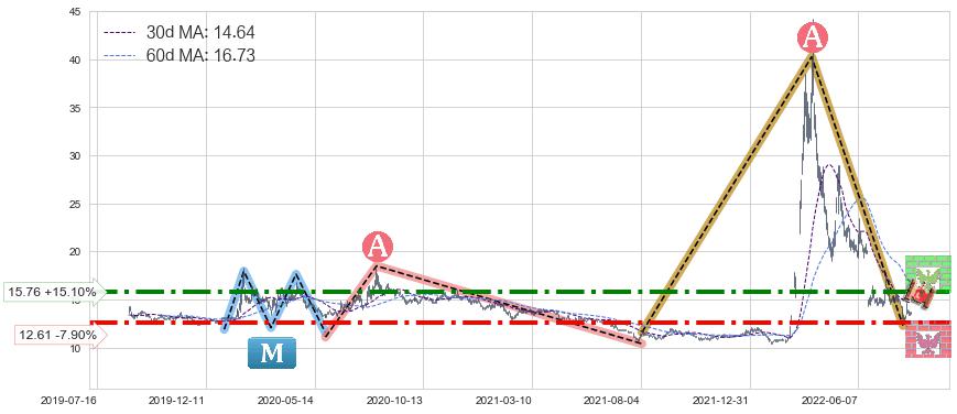 ♘ 阻力价格位15.76,可信任强度70.73%,距离最后交易2022-08-12形成的收盘价格13.69相差 +15.10%
