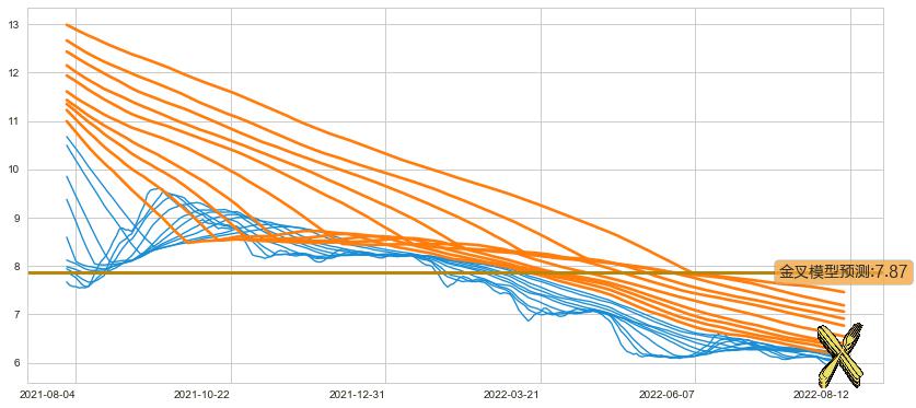 ➣ 70小时均线于(2022-08-10: 6.20)形成【金叉】基于【金叉历史模型】预测金叉后最高波峰价格: 8.26, 金叉后最高价格6.29,尚未达到预测最高波峰价格, 预期继续上涨