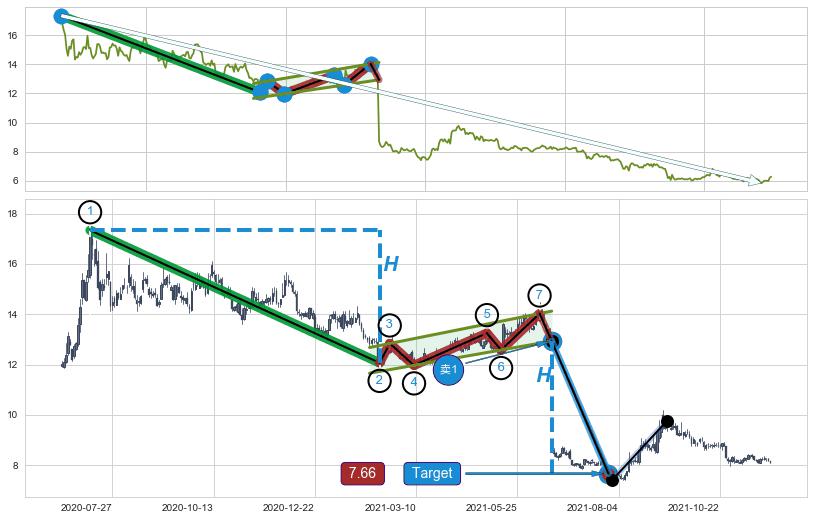 ➢ 【已达成】最小【整理】第一目标价格→(2021-07-28: 7.66 ), 后续继续【整理】下跌动力依然存在,下跌空间适中