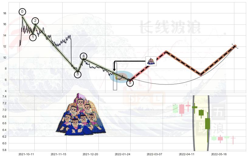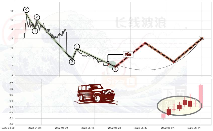 ➢ 🕰 价格走势在2022-06-06至2022-06-10期间形成低档五阳线,残存影响值:2.44
