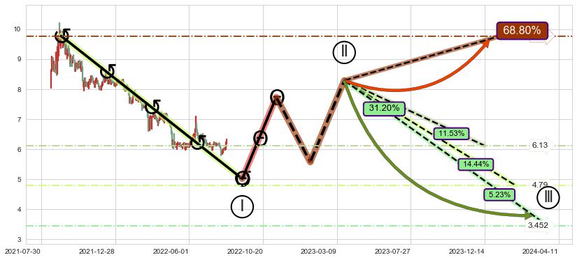 ➣ AI预测: 假定反转启动后, 第❸目标位置(2023-01-05, 5.85)