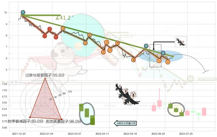 🦴 长线均值回复组合短线趋势跟踪[强阻力信号]2021-09-07-2022-08-11下跌趋势依然成立(下跌趋势跟踪依然存在),短线价格略微上行反弹(均值回复猜想),即将接近下跌趋势提供的未破位阻力价格:6.15。