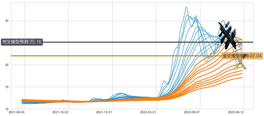 ➣ 34小时均线于(2022-07-25: 25.16)形成【死叉】基于【死叉历史模型】预测死叉后最低波谷价格: 24.49, 死叉后最低价格19.42,已经下跌超出预测最低波谷价格, 预期反弹