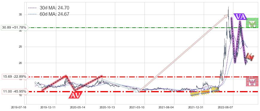 ♘ 阻力价格位30.89,可信任强度53.11%,距离最后交易2022-08-12形成的收盘价格20.35相差 +51.78%