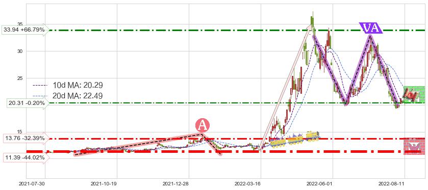 ♘ 阻力价格位20.31,可信任强度51.75%,距离最后交易2022-08-12形成的收盘价格20.35相差 -0.20%