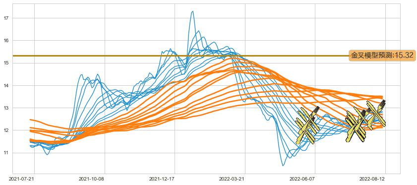 ➣ 70小时均线于(2022-07-15: 12.01)形成【金叉】基于【金叉历史模型】预测金叉后最高波峰价格: 15.44, 金叉后最高价格13.29,尚未达到预测最高波峰价格, 预期继续上涨