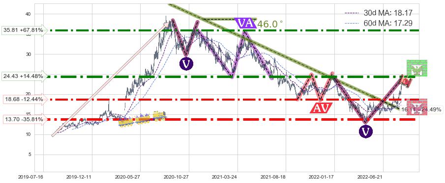 ➢ AI预测: 假定反转如期而至,第❶价格目标位置(2022-09-01, 22.97)