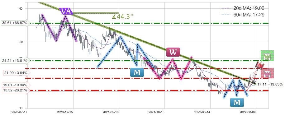 ♘ 支撑价格位19.01,可信任强度57.69%,距离最后交易2022-08-12形成的收盘价格21.34相差 -10.94%
