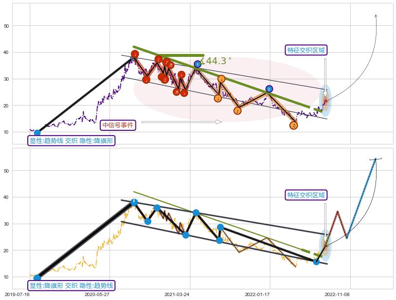 ➢ 趋势线属【中级别信号事件】降旗形属【长级别信号事件】中长周期组合信号事件,中长事件长度比65.05%