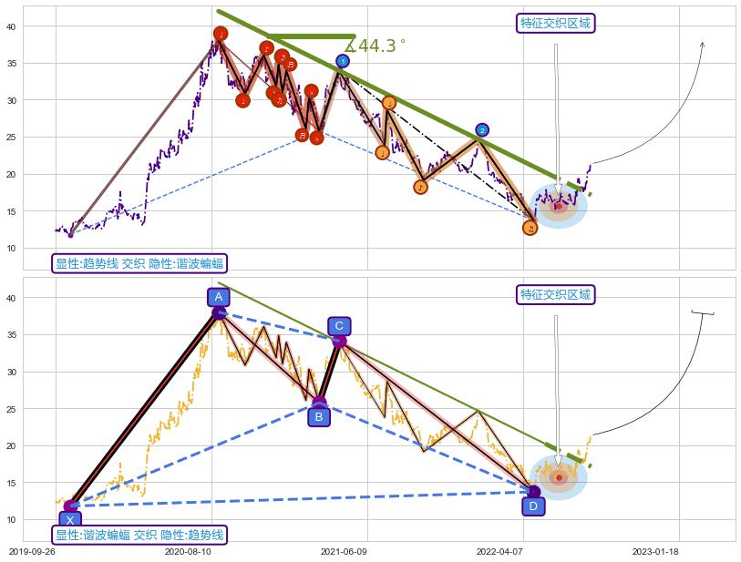 ➢ 已完成【蝙蝠】形态起点X: 2019-10-30, 终点D: 2022-04-26, 共595交易日