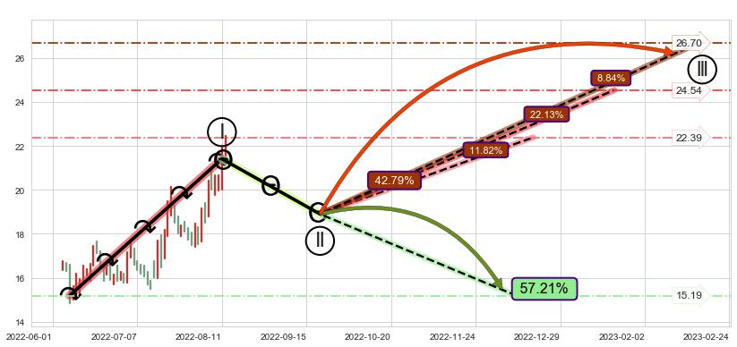 ➢ AI预测: 假定反转如期而至,第❸价格目标位置(2022-10-31, 13.68)