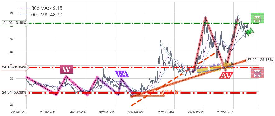 ♘ 阻力价格位51.03,可信任强度57.78%,距离最后交易2022-08-12形成的收盘价格49.45相差 +3.19%