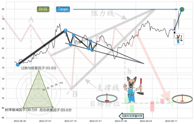 ♘ 支撑价格位41.08,可信任强度55.43%,距离最后交易2022-08-12形成的收盘价格49.45相差 -16.92%