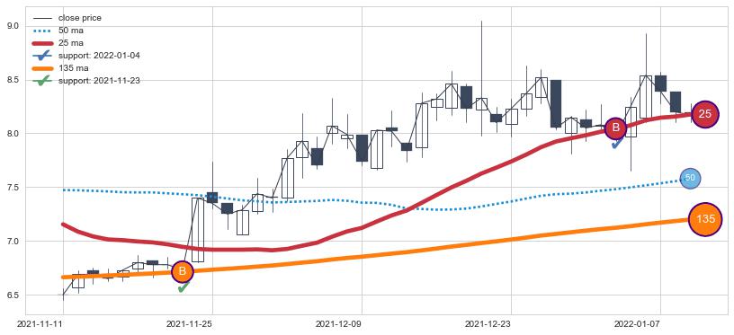 👍 尚未达到多条均线预测的最高波峰价格的平均值, 预期继续上涨