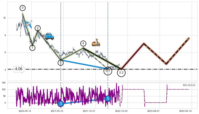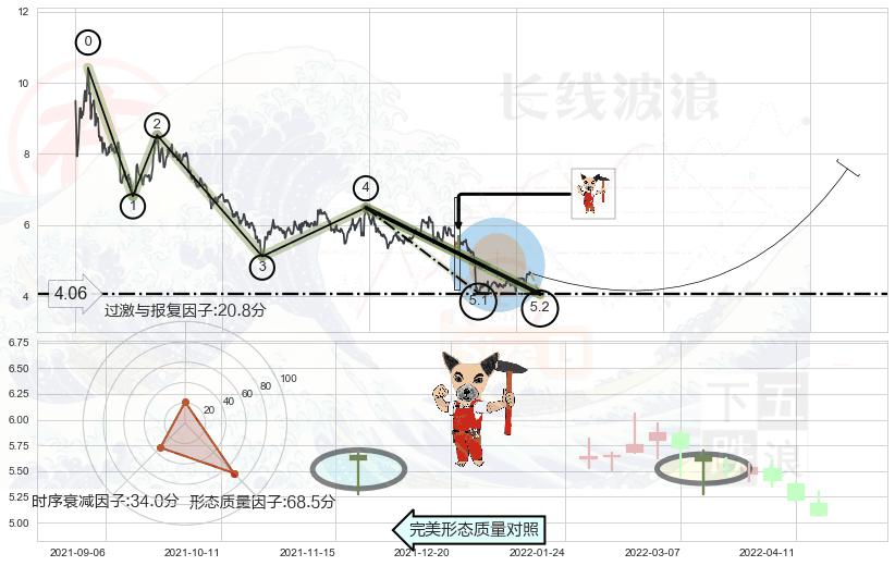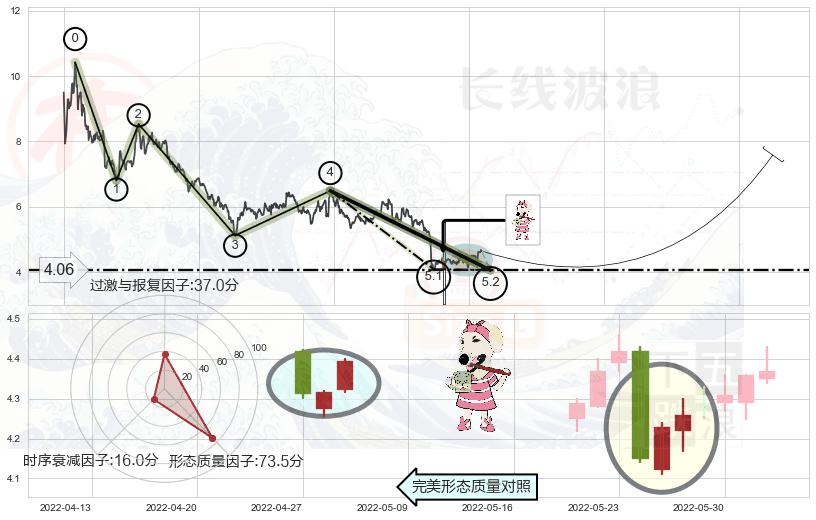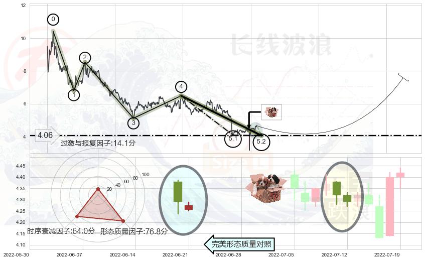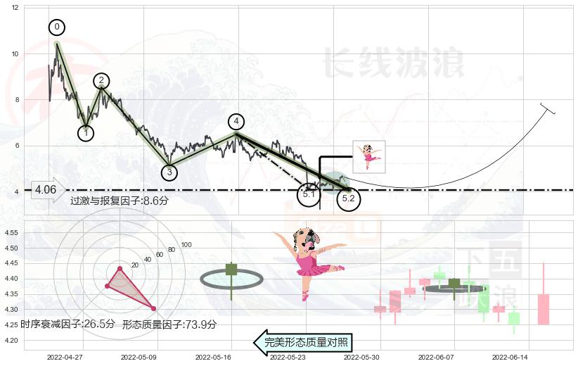 ➣ 5.1: 预测当前第5浪位置(2022-04-29, 4.09),仍然有下跌空间