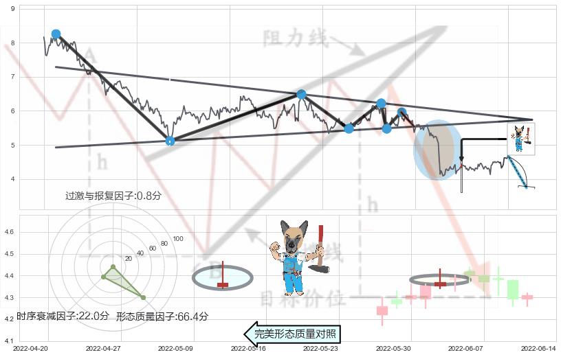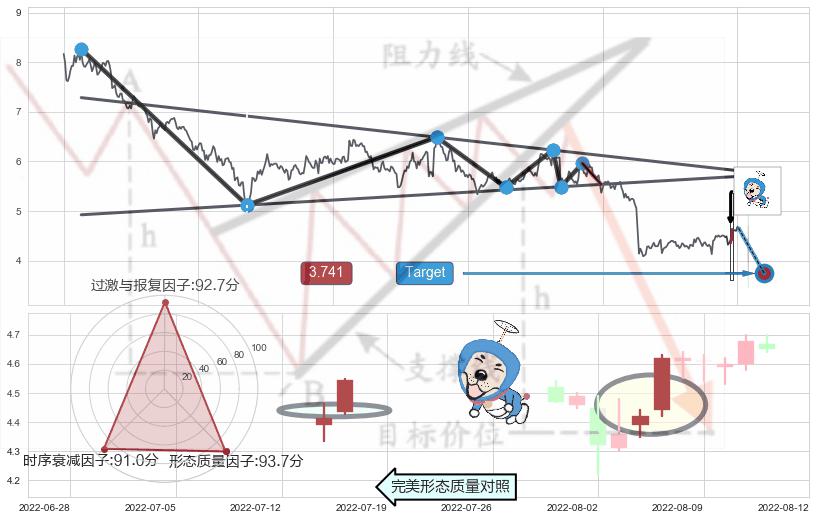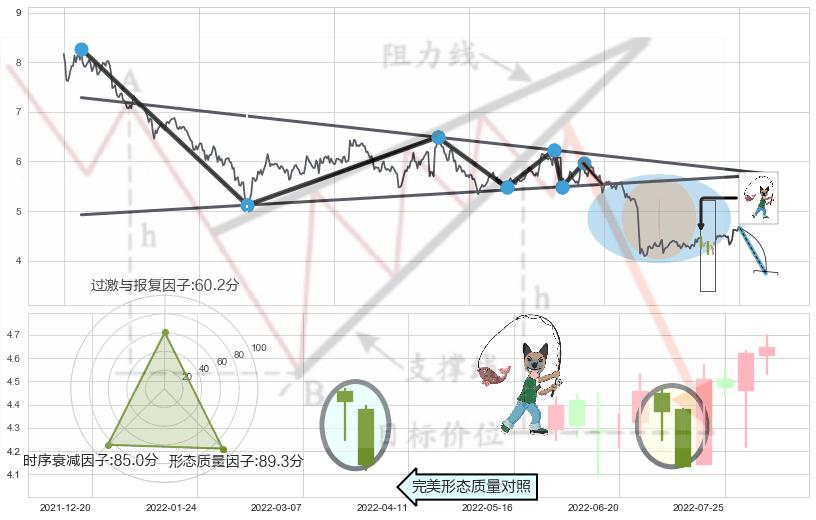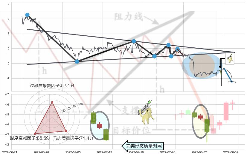 ♘ 阻力价格位6.76,可信任强度84.60%,距离最后交易2022-08-12形成的收盘价格4.65相差 +45.33%