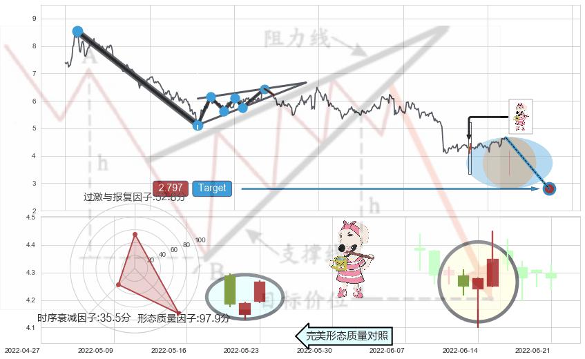 ➢ 🕰 价格走势在2022-06-17至2022-06-17期间形成单针探底(定海神针),残存影响值:1.98
