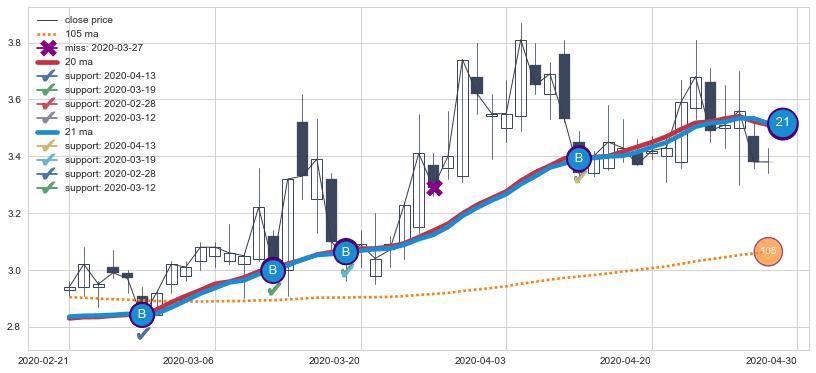 👍 尚未达到多条均线预测的最高波峰价格的平均值, 预期继续上涨