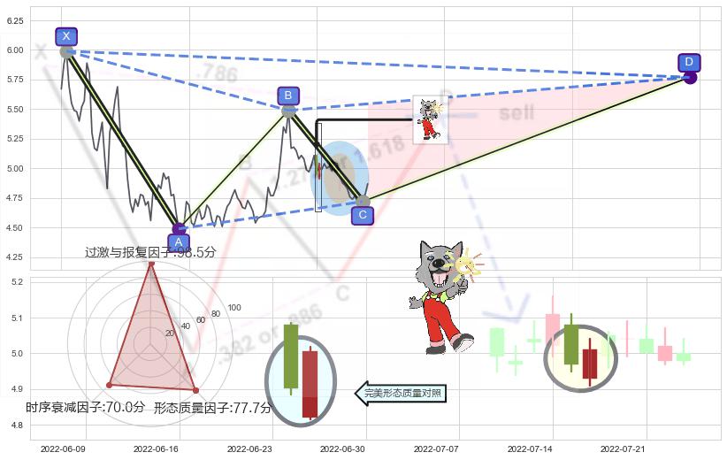 ➣ D点拟合预测价格5.77,距离最后交易收盘价格4.87相差 +18.46%