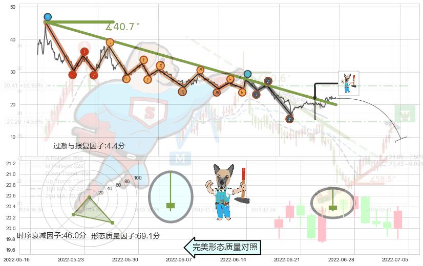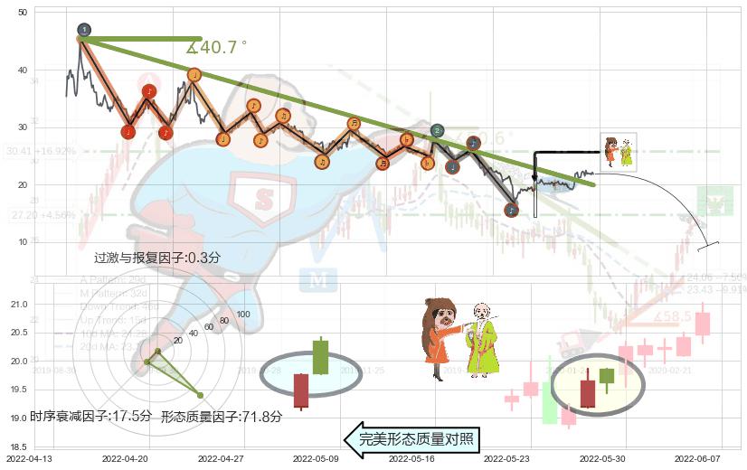 从2020-08-19至2022-06-02,共包含432个交易日,阶段股价下跌-69.29%,阶段股价变动位移路程比: 1 : 9,下跌趋势角度: 40.7