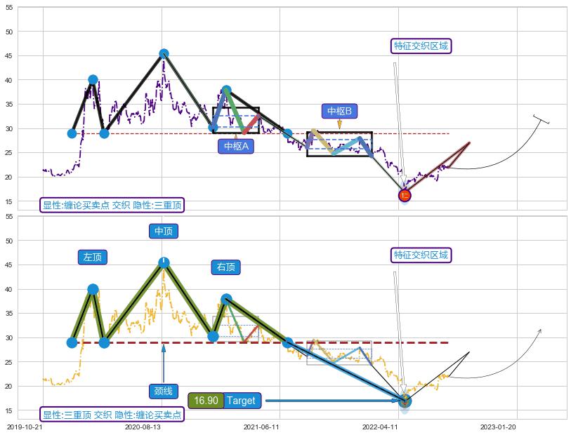 ➢ 三重顶:下跌目标target已达成:猜想强支撑位临近,预期反弹上涨(均值回复)