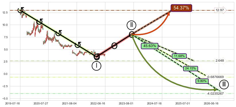 ➣ 波浪理论:猜想止跌 → 上涨 →【拐点】浪5已完成 → 大趋势均值回复
