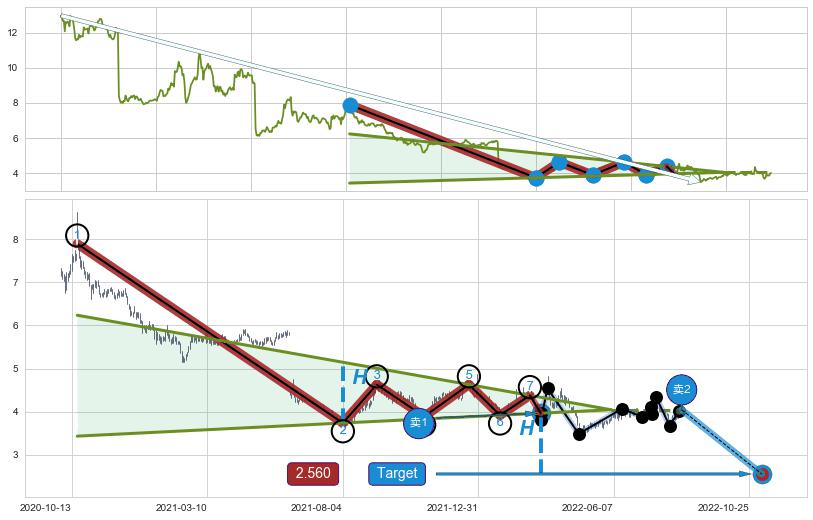 ➣ 【已确认突破】下降【对称】三角形整理 起点:2020-10-19,突破点:2022-03-15,形态共343交易日