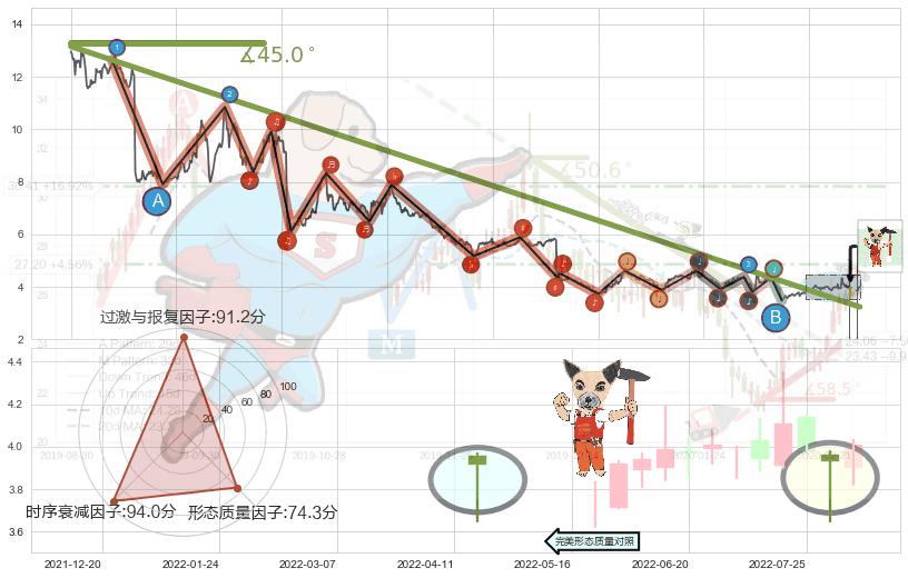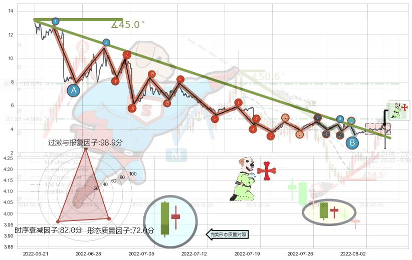 ♘ 支撑价格位3.591,可信任强度97.61%,距离最后交易2022-08-12形成的收盘价格4.01相差 -10.45%
