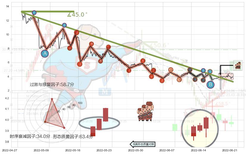 ➣ 2019-07-16-2022-06-14下跌趋势存在反转上涨[机会],虽然原下跌趋势的阻力位(3.247)已被突破,但其阻力效果尚存,原下跌趋势角度: 45.0˚