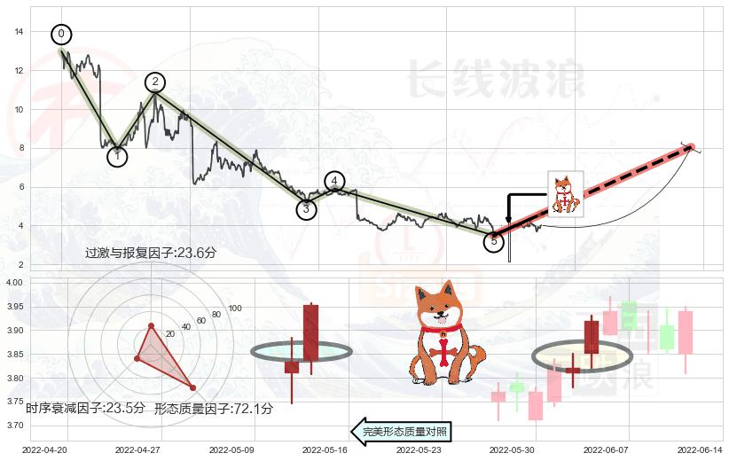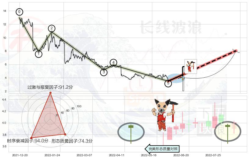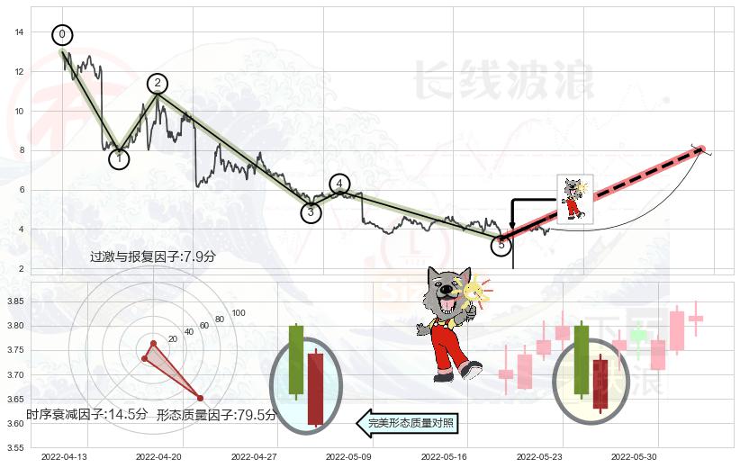 ➢ 曙光初现形态 🔜 波浪理论下跌浪:浪5反弹拐点 综合量化分数:54.41 【偏多】