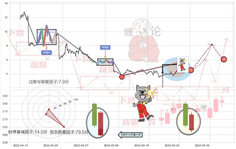 ➢ 【卖1】: 激进型 卖点→(2022-03-15: 3.967 )形成突破下降【对称】三角形整理【整理】形态