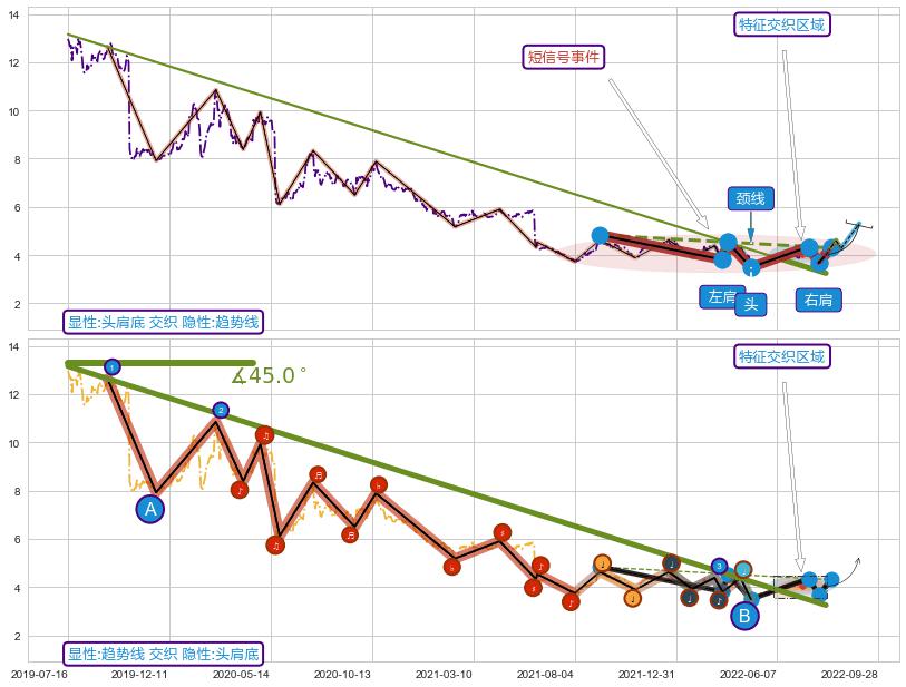 ➢ 头肩底属【短级别信号事件】趋势线属【长级别信号事件】长短周期组合信号事件, 短长事件长度比32.09%
